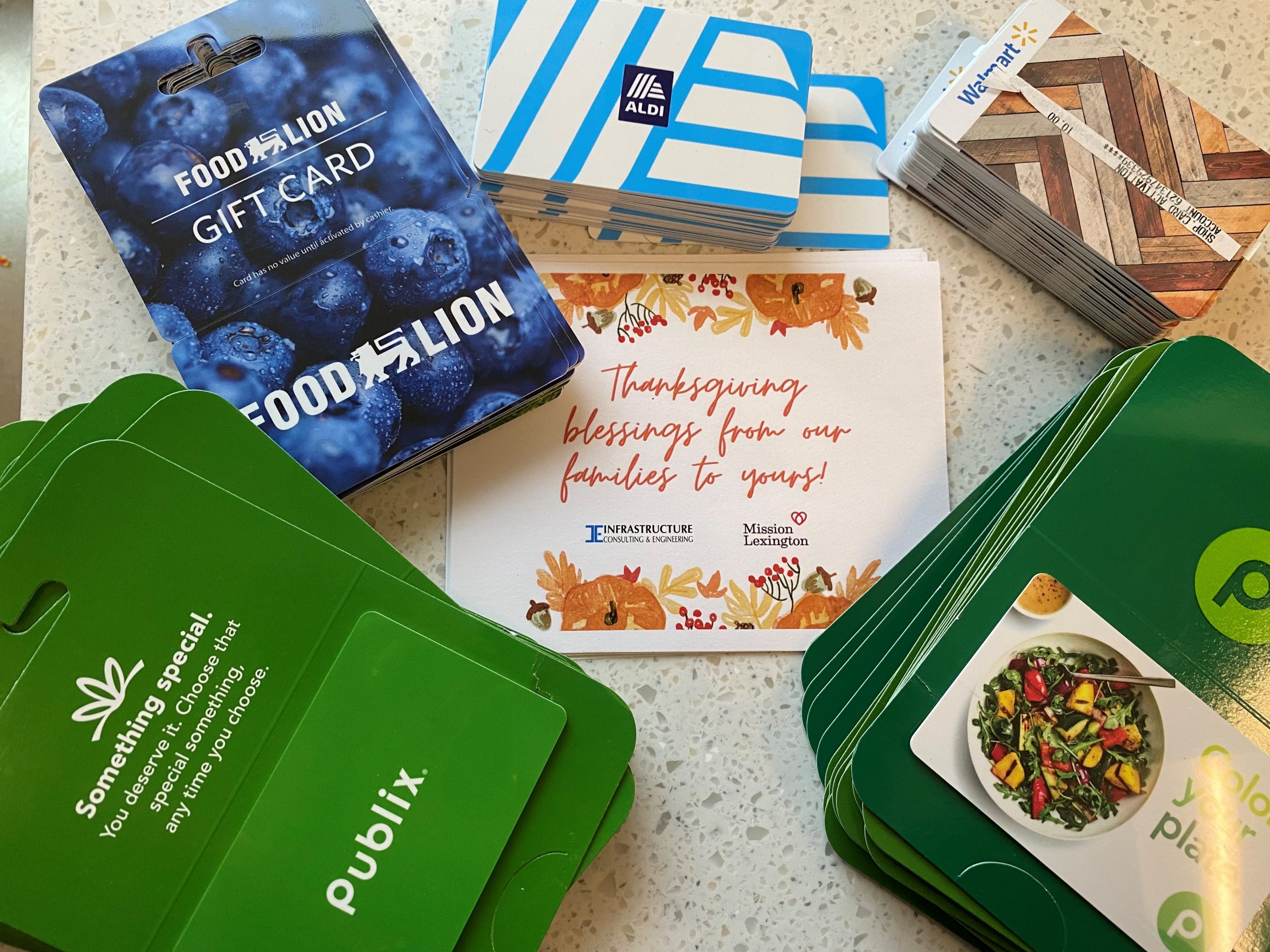Coordinated by MC Probus, the staff in the West Columbia office exceeded last year’s collection of 120 baskets with 47 different donors, we collected enough food to assemble baskets filled with canned vegetables, stuffing, gravy, dessert, yams, and a gift card for a turkey or ham.
