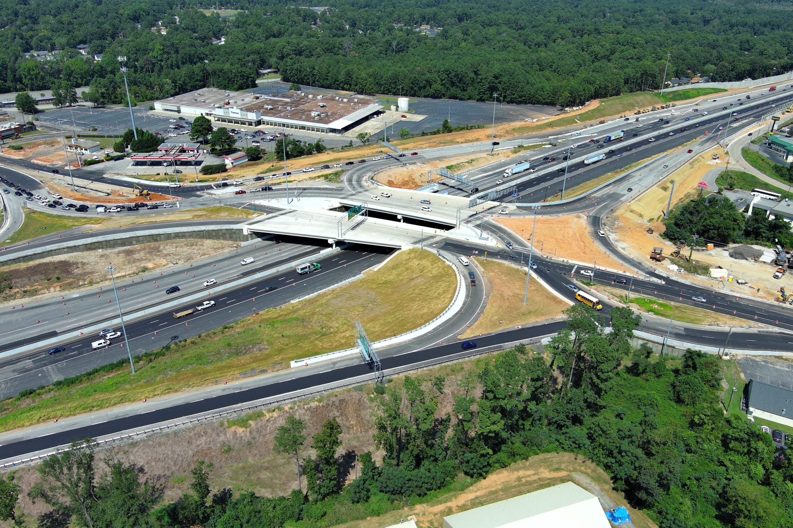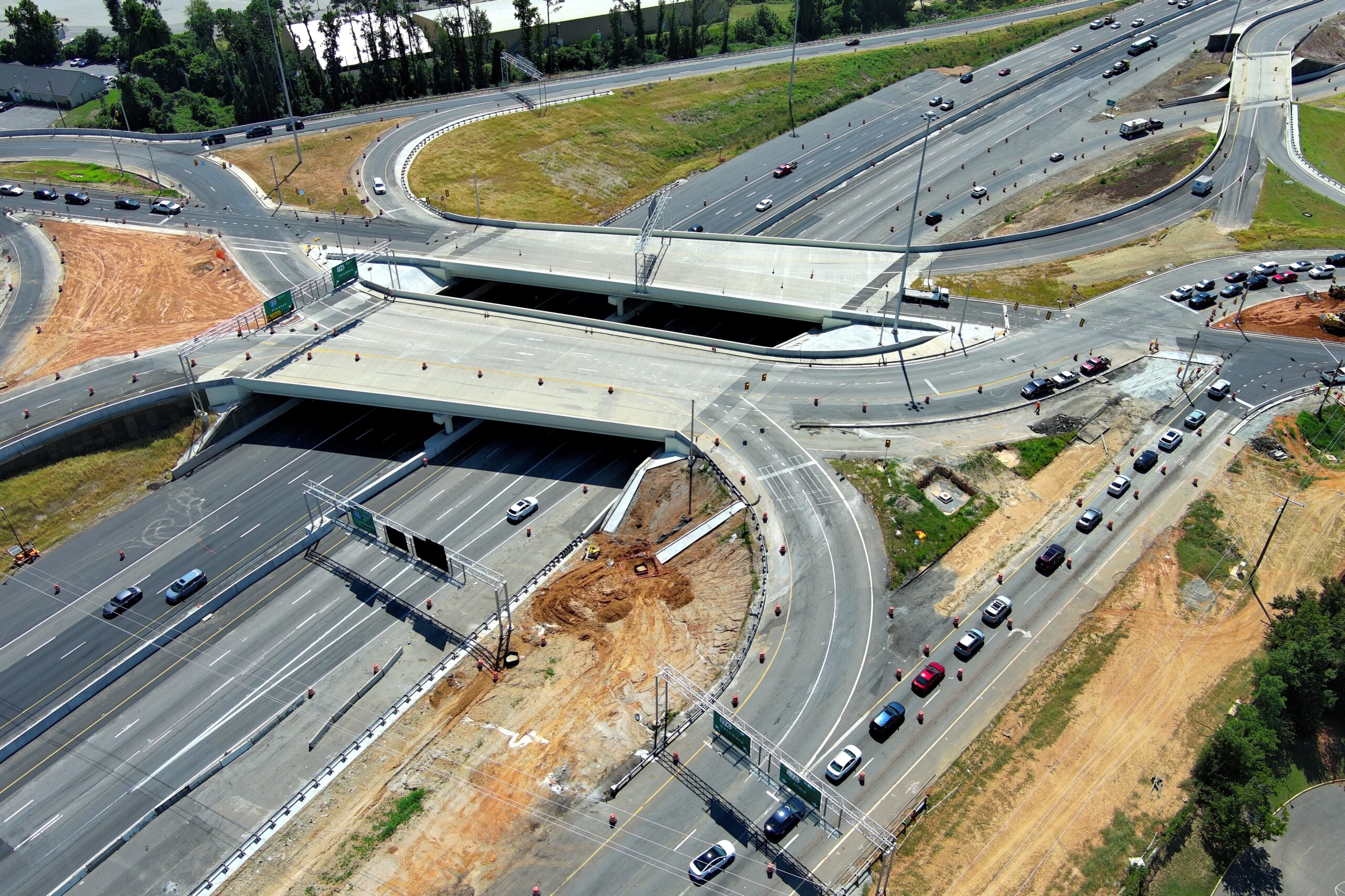 The final design was intended to reduce the number of accidents by enhancing safety operations at the interchange and to reduce long-term maintenance needs by decreasing the overall bridge area by 19,138 square feet. The Maintenance of Traffic (MOT) Plan was developed with the specific goal of minimizing traffic shifts and temporary lane closures and limiting construction phases for I-20, US 176, and the surrounding roadway network. ICE’s approach ensured that all lanes along I-20 and US 176 remained open while widening, median, and bridge work were underway. Throughout construction, ICE also provided quality control management through a dedicated team of certified QC inspectors and testing technicians, as well as geotechnical design for roadway, roadway structures, and bridge structures.